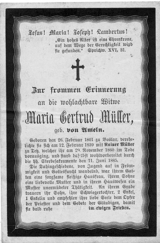 ∞ 12.2.1839 Rainer Müller zu Tetz, † 29.11.1860; 1 Sohn |