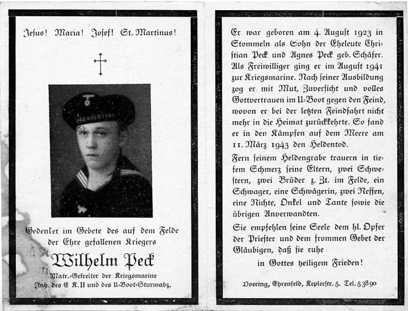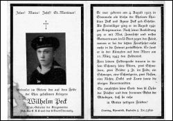 Gefallener 2. Weltkrieg, Eltern: Christian Peck und Agnes geb. Schäfer |