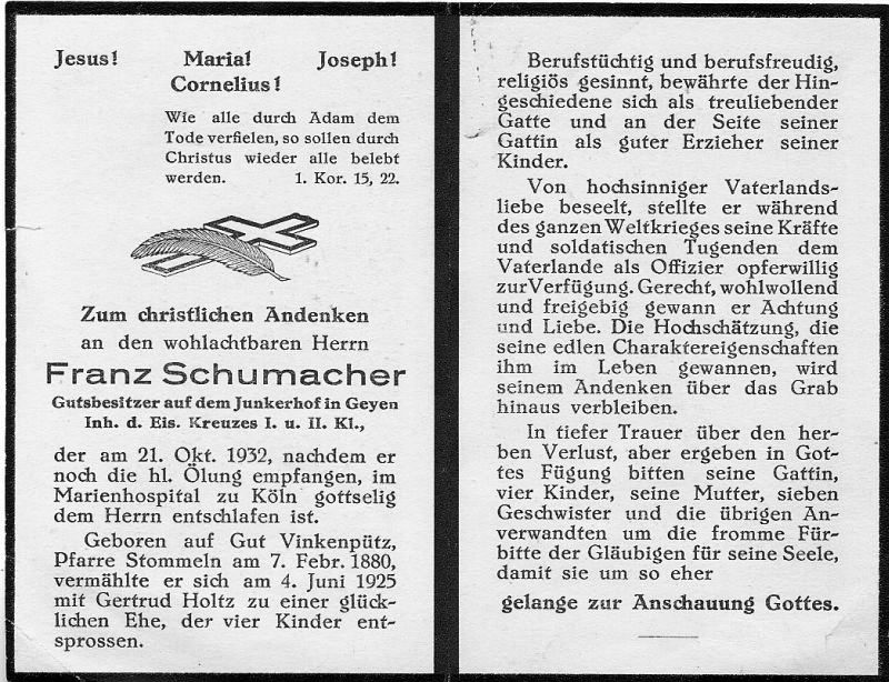 Gutsbesitzer auf dem Junkerhof in Geyen; ∞ 4.6.1925 Gertrud Holtz; 4 K.; Offizier im 1. Weltkrieg; |