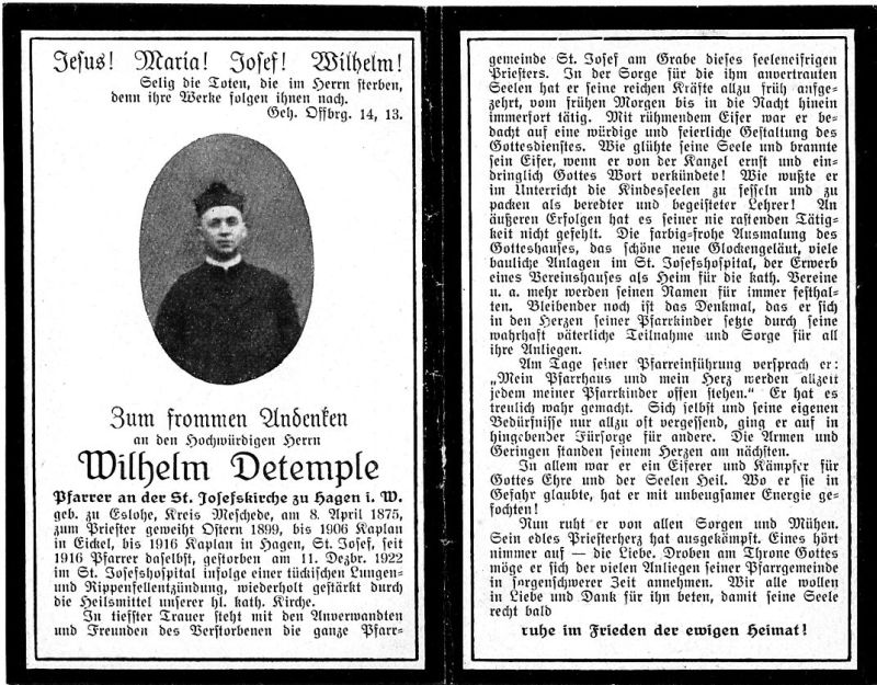 Priesterweihe 1899; Pfarrer an der St. Josefskirche zu Hagen i.W. |