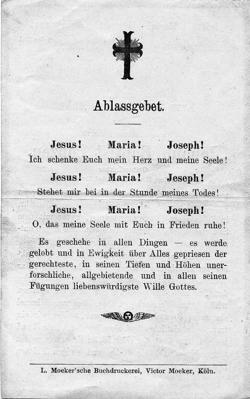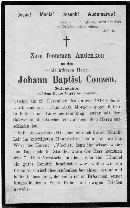 Gutspächter auf Haus Vorst b. Frechen; Lungenentzündung |