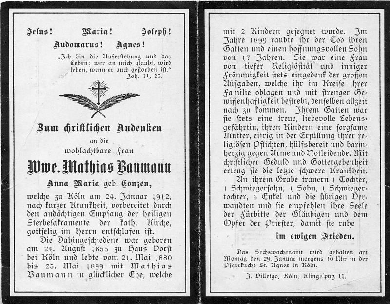 ∞ 21.5.1880 Mathias Baumann, † 25.5.1899; 2 K.; 1 Sohn 1899 mit 17 J. †; |