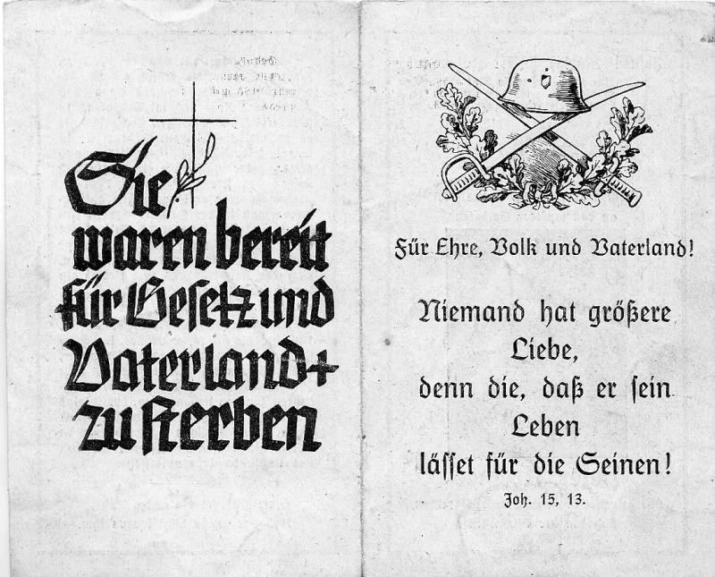 Gefallener 2. Weltkrieg; ∞ 26.1.1943 Odilie Schorn; seit April 1940 Soldat; 1 überlebender Sohn |