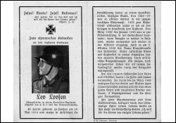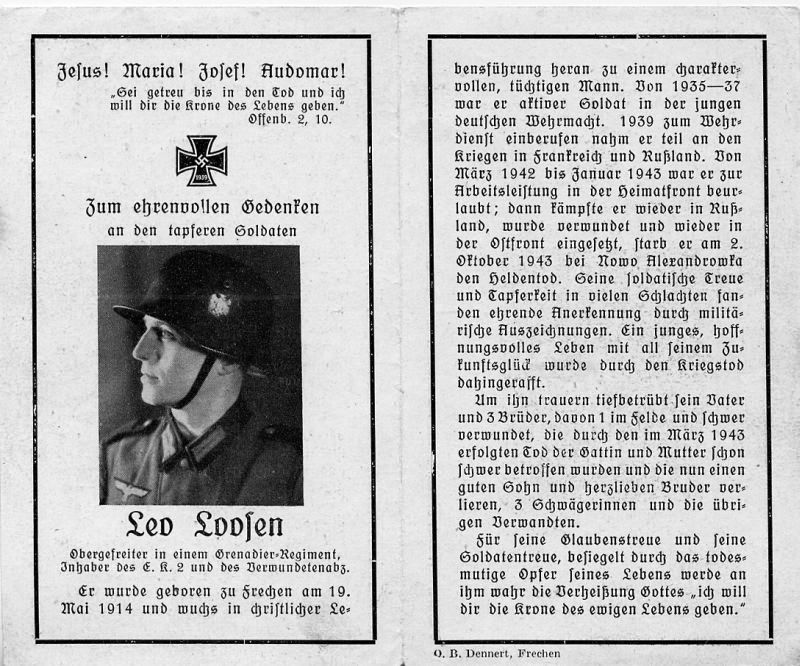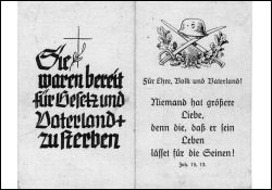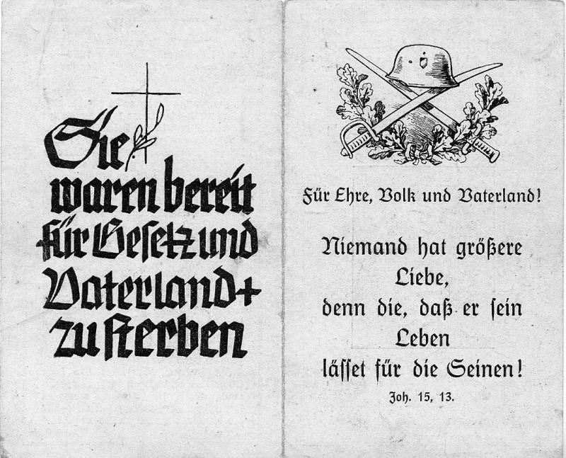 Gefallener 2. Weltkrieg; 1939 Einberufung; Mutter im März 1943 †; 1 Bruder im Felde schwer verwundet |