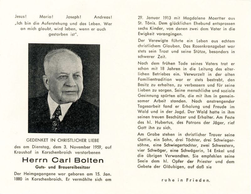 Guts- u. Brauereibesitzer; ∞ 29.1.1913 Magdalene Moertter aus St. Tönis; 6 K., davon 2 †; nach frühem Tod des Vaters trat er schon mit 18 J. in die Leitung des elterl. Betriebes ein |