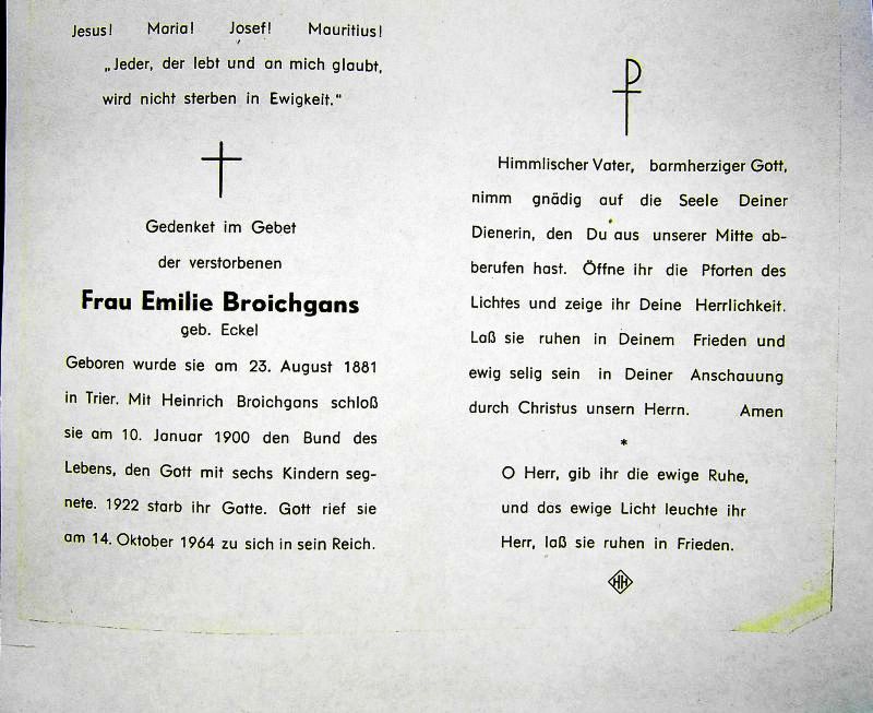 ∞ Heinrich Broichgans 10.1.1900, † 1922; 6 K. |
