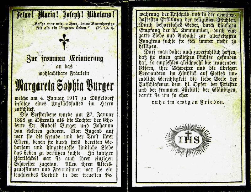 Fräulein; Eltern: Dr. Rudolf Burger u. Johanna geb. van Ackeren; |