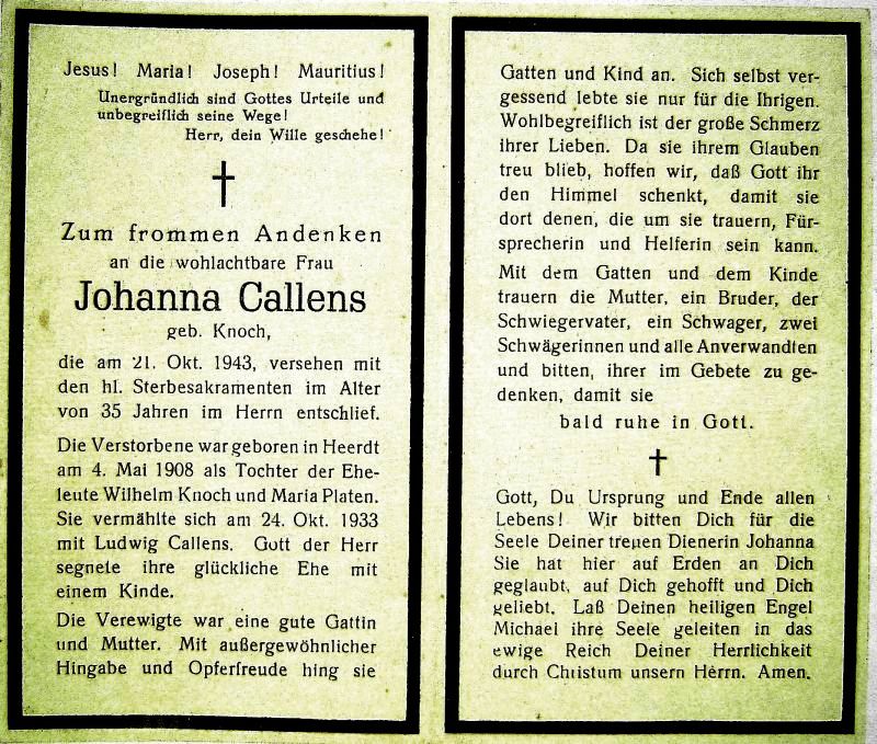 Eltern: Wilhelm Knoch u. Maria geb. Platen; ∞ 24.10.1933 Ludwig Callens; 1 K. |
