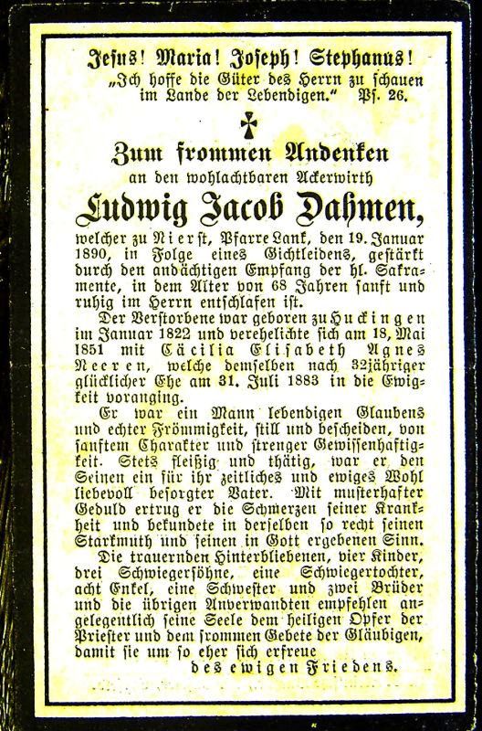 ∞ 18.5.1851 Cäcilia Elisabeth Agnes Neeren, † 31.7.1883; 4 überlebende Kinder |