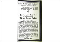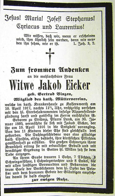 ∞ Jakob Eicker, † 10.4.1916; 11 K., davon 3 †; sehr schmerzhafte Krankheit |