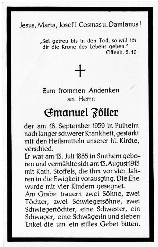 ∞ 13.8.1913 Kath. Stoffels, vor 4 J. gestorben; 4 K. |