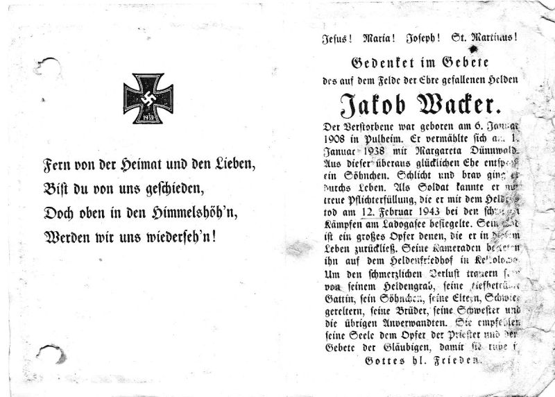 Gefallener 2. Weltkrieg; ∞ 1.1.1938 Margarete Dünnwald |