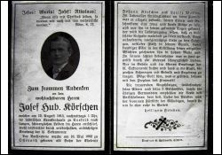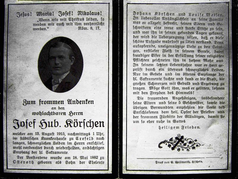 Eltern: Johann Körschen u. Louise geb. Weisen; schmerzliches Leiden; Druck in Fischeln |