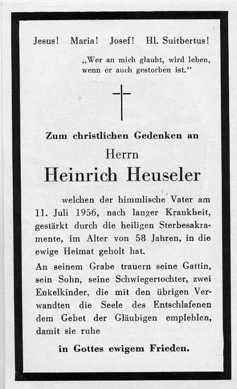| 58 J.; lange Krankheit; hinterläßt Gattin u. 1 Sohn (Düsseldorf-Kaiserswerth) |