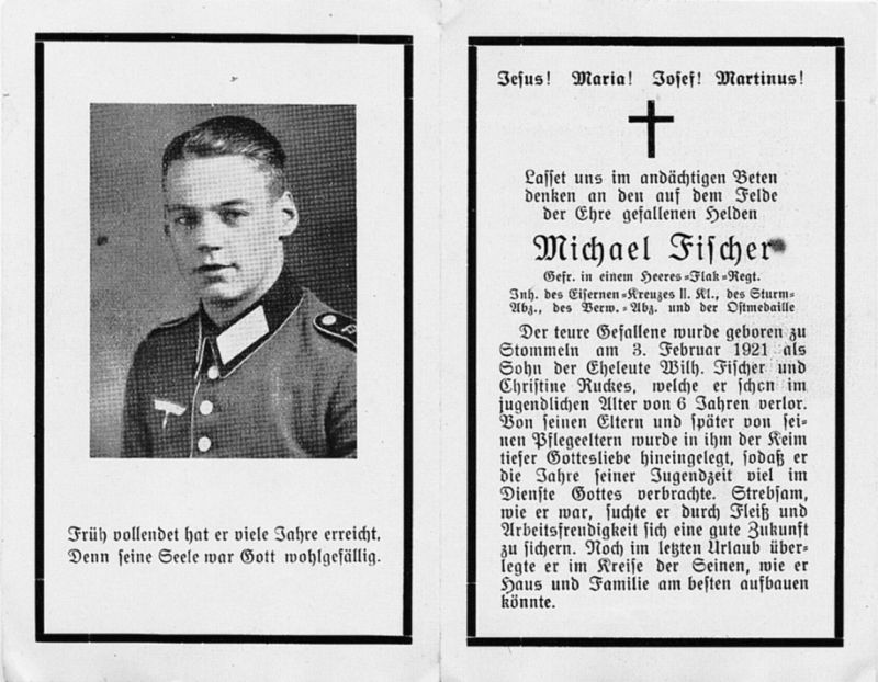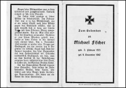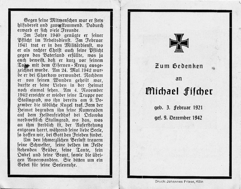 Gefallener 2. Weltkrieg: Eltern Wilh. Fischer†Christine geb. Ruckes, früh verstorben; Pflegeeltern; Grab bei Orlowka |
