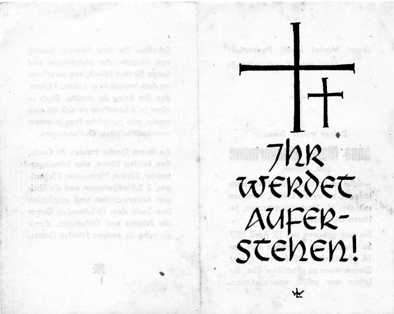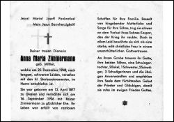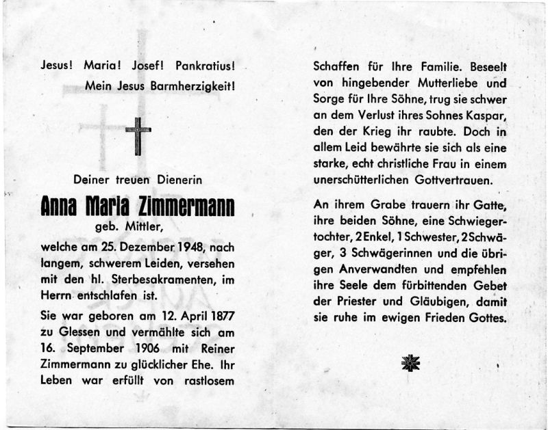 ∞ 16.9.1906 Reiner Zimmermann; Sohn Kaspar gefallen im 2. Weltkrieg |