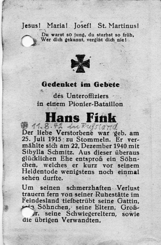 Gefallener 2. Weltkrieg; ∞ 22.12.1940 Sibylla Schmitz |