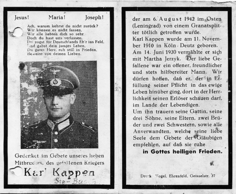 Gefallener 2. Weltkrieg; aus Stommelerbusch; ∞ 14.06.1930 Martha Jerzyk |