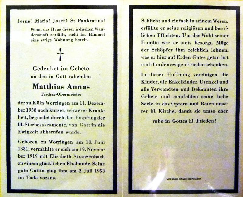 Fischer-Obermeister; ∞ 19.11.1919 Elisabeth Stranzenbach, † 2.7.1958; Kinder |