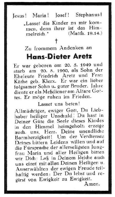 Eltern: Friedrich Aretz u. Käthe geb. Klerx |