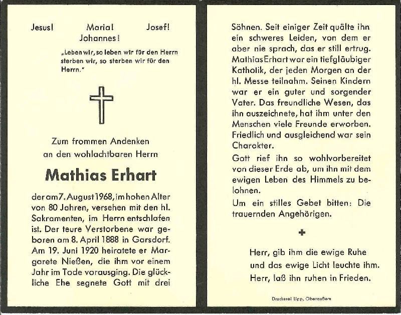 ∞ 19.6.1920 Margarete Nießen, † 1967; 3 Söhne; schweres Leiden; Druck in Oberaußem |