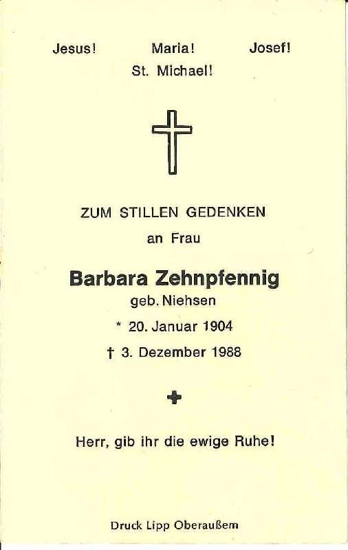 Zehnpfennig, geb. Niehsen | Vorname: |