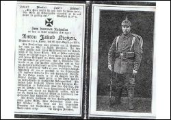 Gefallener 1. Weltkrieg; gewann stets Vertrauen der Herrschaft; 9.11.1914 Einberufung; in Gefecht bei St. Mihiel im Ailly-Walde in französische Gefangenschaft; ein halbes Jahr lang Ungewissheit |