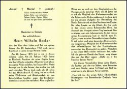 ∞ 25.02.1900 mit Elisabeth Porschen, 5 Kinder. Mehr als 55 Jahre bei der Rheinischen AG. Betriebsführer, Bundesverdienstkreuz, 25 Jahre Mitgl. des Kirchenvorstandes, um Himmelslohn bitten Gattin, Tochter † 4 Söhne, |