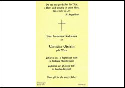 Gierens, geb. Wertz | Vorname: |
