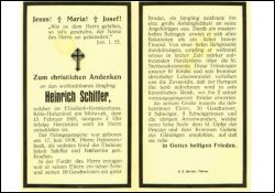 wohlachtbarer Jüngling; Eltern Jakob Schiffer und Katharina geb. Koellen; 10 Geschwister davon 2 †; Herzleiden; |