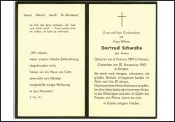 Witwe; nach langem, schwerem, mit großer Geduld ertragem Leiden; |