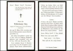 ∞ 08.11.1893 Kornelius Bax; 27 Kinder, wovon ihr 17 in die Ewigkeit vorangingen; Mitglied des Müttervereins und der Rosenkranzbruderschaft; |