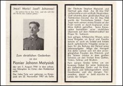 Eltern Staphan Matysiak und Gertrud geb. Abel;∞ 22.05.1937 Kath. Neukirchen; 1 Tochter Christel; von Mine tödlich getroffen; Heldenfriedhof bei Filipor Kr. Sudauen; |