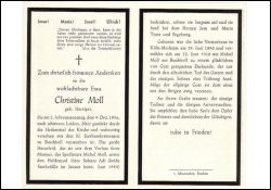 ∞ 22.06.1918 Michael Moll † 1944; 1 Sohn Adi † Juni 1944; Ehemann Spediteur; 1 Tochter; |