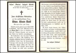 ∞ 06.07.1890 Adam Moll † 03.03.1933 ; 7 Kinder, 2 †; Schlaganfall; Druck Johann Schumacher, Frechen; |