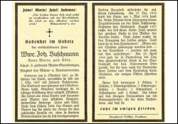 ∞ 01.10.1887 Johann Buschmann † 19.12.1910; 9 Kinder; † Sohn Johann 01.05.1916 †; Aug. 1927 Sohn Josef †; |