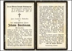 ∞ 01.10.1887 Anna Maria Cöln; 9 Kinder, Werkmeister; Tod infolge Lungenentzündung; |