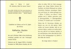 ∞ 1898 Johann Muckes 1952 †; 7 Söhne, 9 Töchter, davon 1 Sohn gefallen und 2 Töchter †; |