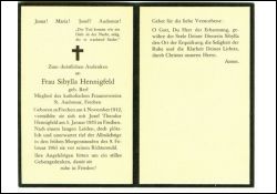 ∞ 05.01.1935 Josef Theodor Hennigfeld; Mitglied des kath. Frauenvereins St. Audomar, Frechen; |