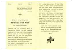 Eltern Matthias Kluth und Katharina geb. Saxler; 4. Kind; Opfer eines Betriebsunfalles; |