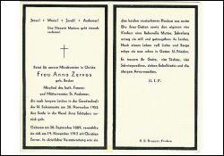 ∞ 19.11.1912 Christian Zervos; 2 verstorbene Kinder aus erster Ehe des Gatten; 4 Kinder; Druck O.B. Dennert, Frechen; |