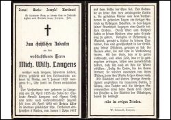 Eltern Arnold Langens und Agnes Voiß; ∞ 29.04.1893 Ursula Esser; 4 Kinder, davon 1 Sohn 1917 †; |
