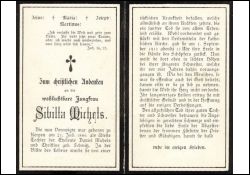 wohlachtbare Jungfrau; älteste Tochter der Eheleute Daniel Michels und Christine geb. Schmitz; tückische Krankheit; |