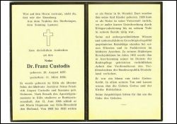 Notar; Eltern Justizrat Notar Friedrich August Custodis und Susanna geb. Heimann; ∞ 12.06.1906 Maria Hopmann aus Köln-Ehrenfeld; Verdienstkreuz der BRD; |