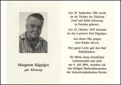 Eltern Josef und Edith Kleinsorg; ∞ 25.10.1945 Landwirt Paul Kügelgen; 2 Kinder; |