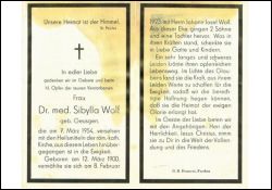 Wolf, Dr. med., geb. Geusgen | Vorname: |