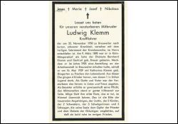 Eltern Bernhard Klemm und Gertrud geb. Breuer; ∞ 16.05.1929 Katharina Dingarten, Frechen; 4 Kinder, davon 1 †; Kraftfahrer; |