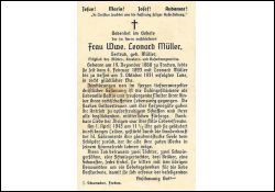 ∞ 04.02.1893 Leonard Müller † 03.10.1931; Mitglied des Mütter-, Kevelaer- u. Rosenkranzvereins. |