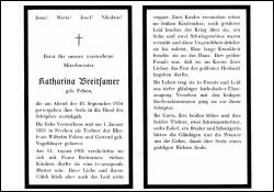 Eltern: Wilhelm Felten u. Gertrud geb. Vogelfänger; ∞ 11.8.1901 Franz Breitsamer; 7 K., davon 2 früh verstorben; 1 Sohn und 2 Schwiegersöhne im 2. Weltkrieg vermißt |