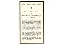 ∞ 03.10.191927 Peter Philipps aus Buschbell, 20.03.1953 †; 1 Tochter; |